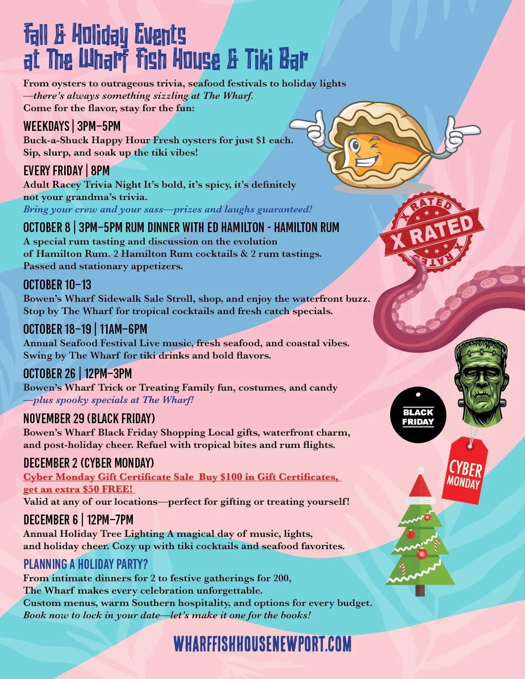 Polynesian inspired small plates, New England classics and Tiki Bar. Right in the heart of bowen’s wharf.
